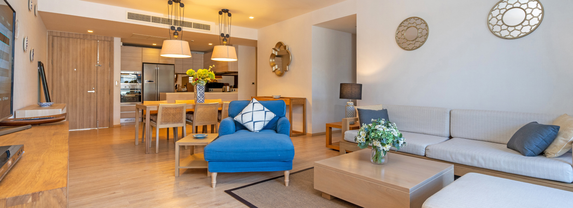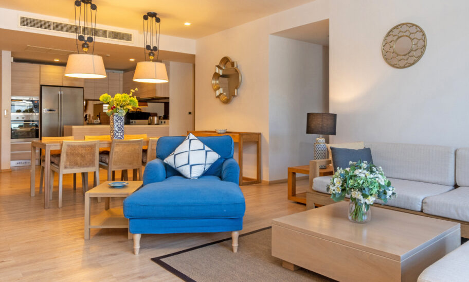 The residence is comprised of 5 bedrooms, 2 master bathrooms, 4 on-suite guest bathrooms, 2 powder rooms, 2 offices, 2 dressing rooms, a media room, an oversized eat-in gourmet chef's kitchen, and a sprawling 1,100 square-foot Great Room perfectly situated in the prime southwest corner of the floor.